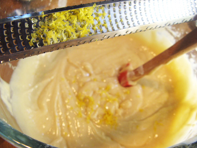 I melted the butter and poured into my mixing bowl along with the sour cream. I blended these together on medium speed until it was a creamy mess.