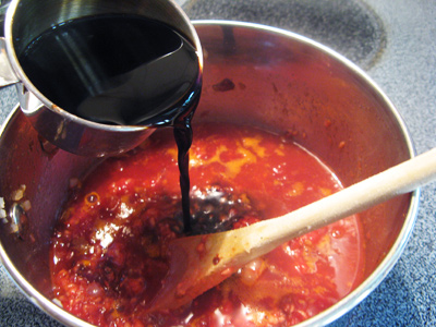 I set aside 1/2 cup of the sauce for the salad dressing and will place the remaining sauce on the stove to simmer. Stir often about 20 – 30 minutes.