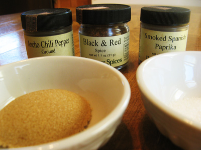 I made a rub for the steak consisting of ancho chili powder, black and red (which is equal parts red and black pepper), smoked spanish paprika, brown sugar and salt.