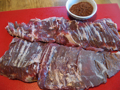 My skirt steak was almost 1 1/2 pounds. I generously rubbed the spices over the steak on both sides.