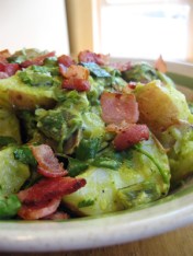 Gently toss the potatoes with the mayo and veggies. Sprinkle some cooked bacon pieces over top.