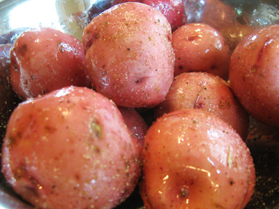 I picked up these red potatoes at the farmer’s market. It took about 10 potatoes to make 1 1/2 pounds. Also needed some olive oil, salt and pepper.