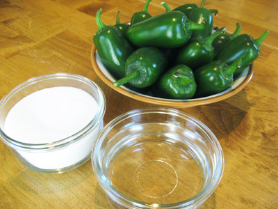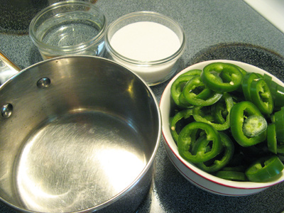Did I mention these were simple? I have a cup of sugar, a cup of water and about a pound of jalapenos (about 10 give or take).