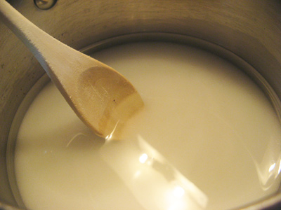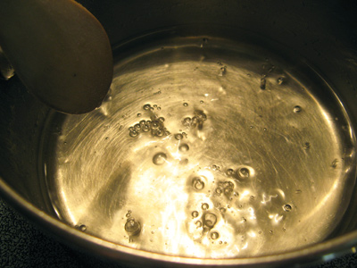 Add the sugar and water to the saucepan. The sugars will dissolve in just a few minutes.