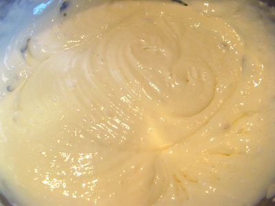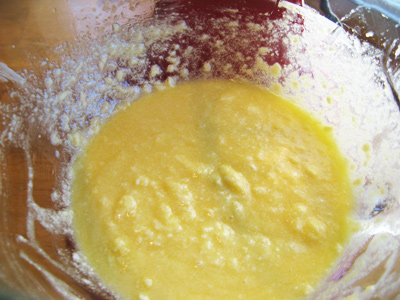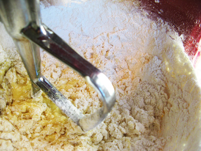 Alternate with buttermilk, mix, and then add the remaining flour. Blend together. The batter will be somewhat thick.