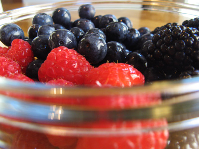 And berries . . . 2/3 cups each raspberries, blackberries and blueberries.