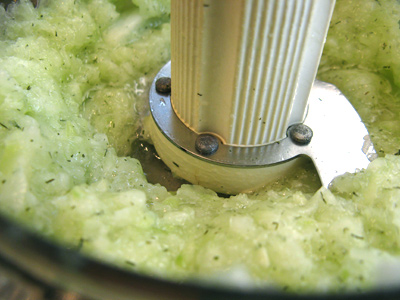 Peel and seed cucumbers.  Cut cucumbers into smaller pieces.  Place in a strainer and sprinkle 1/2 tablespoon coarse Sea Salt.  Let sit for 30 minutes to draw out any additional liquid.  Drain and pat dry with a paper towel.
