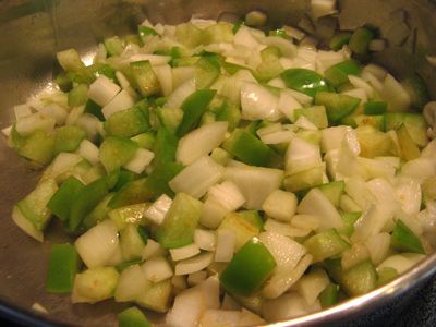 Drizzle some olive oil in a saucepan over medium high heat. Saute the onions and tomatillos until they are softened and the onions become translucent.