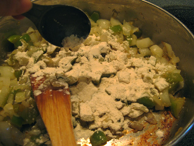 Stir in a tablespoon of flour to the veggies to make a roux.
