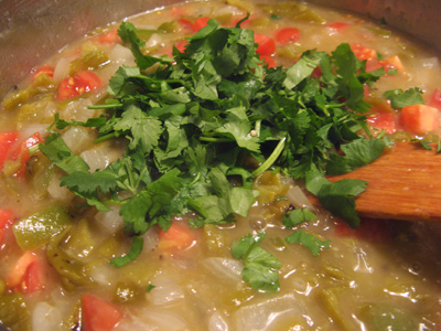 Lastly, add a couple tablespoons of cilantro. Stir it together and salt to taste.
