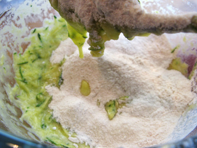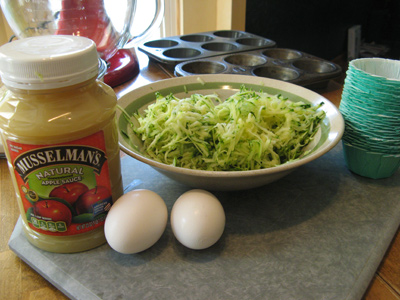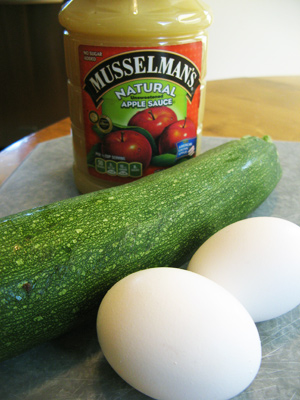 You’ll also need some natural unsweetened applesauce, 1 medium zucchini (about 2 cups) and 2 eggs.