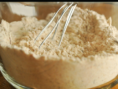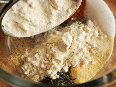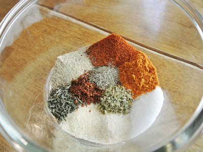 Combine dry spices in a small bowl.  Combine with flour and mix well.