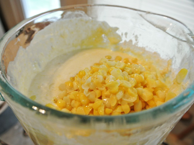 Stir in the remaining half of the corn kernels and stir into the batter.