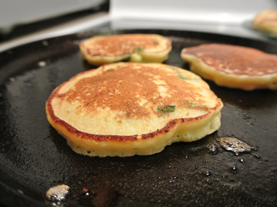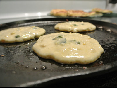After about half the batter, I added my diced poblano to the remaining batter and made some more. I think corn and chiles naturally go together and these were oh so good.
