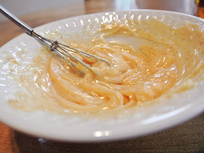 Before I serve these up I’m going to make a tasty sweet chili butter made from softened unsalted butter, honey, cayenne pepper and a little salt . . . well, because my butter was unsalted. You can skip the salt if using salted butter.