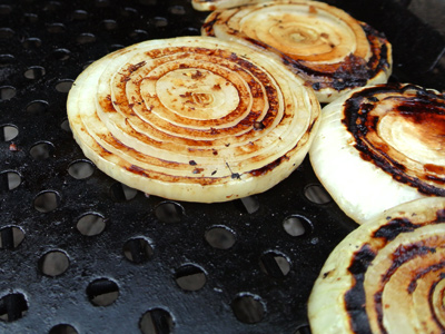 The onions need to be turned over about 3 1/2 minutes in. As you can see they are already starting to char.
