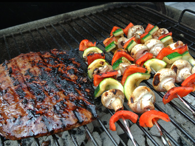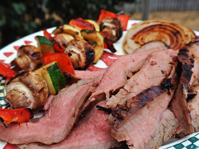 Grilled Flank Steak with Veggie Kabobs
