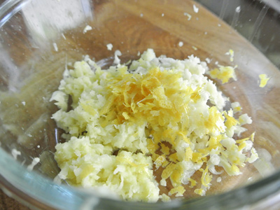 Grate some lemon zest, about 3 teaspoons give or take. The aroma of fresh ginger, garlic and lemon are going to take over your senses right about now!