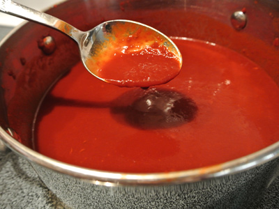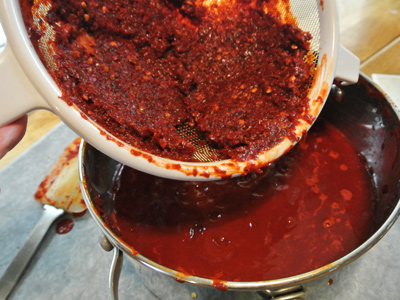 Strain the outer skin and leftover seeds to leave a smooth red sauce.