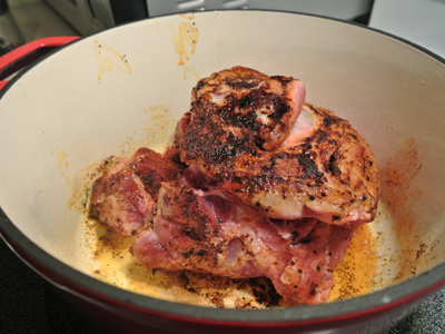 I had some leftover ground chiles and used that to rub the outside of the pork roast along with some salt and pepper.