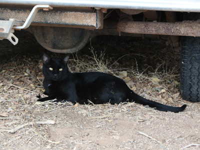 This is Rusty or Buster, I’m not sure which since they are identical, with the exception that Rusty has a rust colored patch around his neck. He’s sleek like a panther and keeps the mice away!
