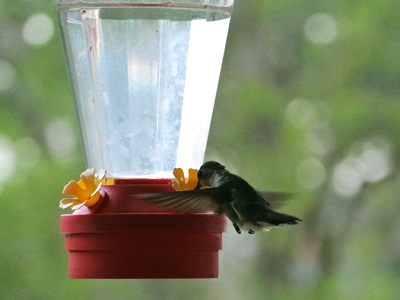 The hummingbirds have been coming to the farm for many years. My brother Carl has about 5 feeders on the front porch that he fills with sugar water each day. Some days they have 20 hummingbirds or more. My Mom has always been fascinated with the little hummers and has a collection of tiny little nests that have been abandoned over the years.