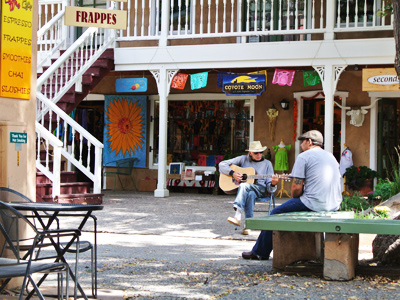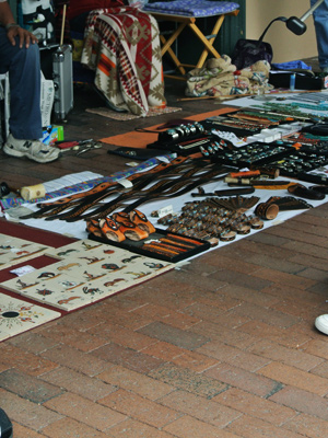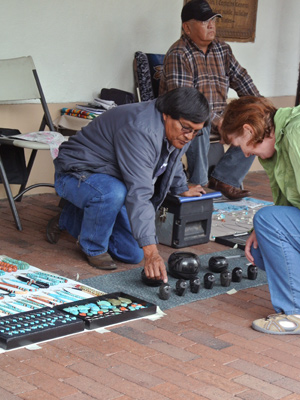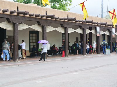 On the North side of the plaza the Native Americans lay out their art and jewelry on the sidewalk.