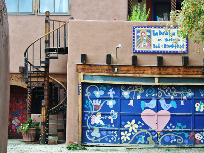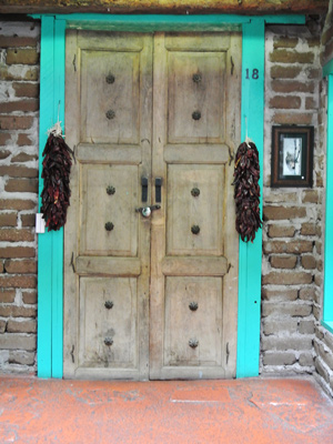I have a thing for doors as you can see from my header. This is one in a collection of doors I found in Santa Fe. My header was a gift from Josh, who took pics of old vintage doors around the farm. He put it together and named it “Tucumcari Doors”.