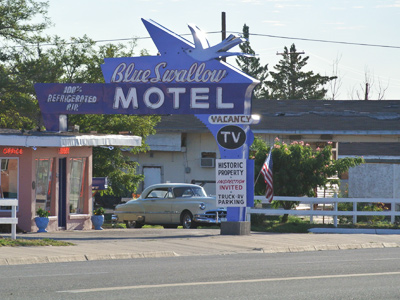 And across the street is the Blue Swallow Motel, another famous Route 66 treasure. There are murals all around town displaying the history of Route 66.