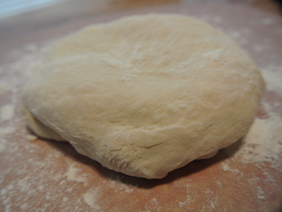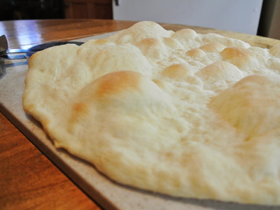Take a piece of dough and snip with scissors. The first time I cut a chunk of dough about the size of a large grapefruit and it made a thick “pan like” crust. A baseball size dough made a medium crust that bubbled around the edges.
