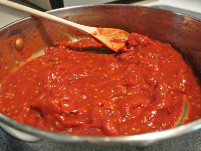 The tomatoes are still a bit thin so to thicken it add 2 tablespoons of tomato paste.