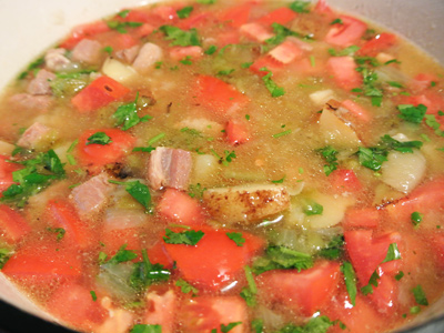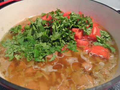 Simmer with the tomatoes and cilantro for 1 hour.