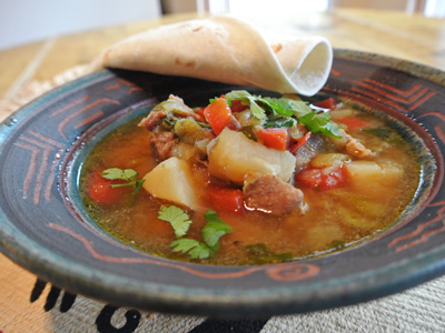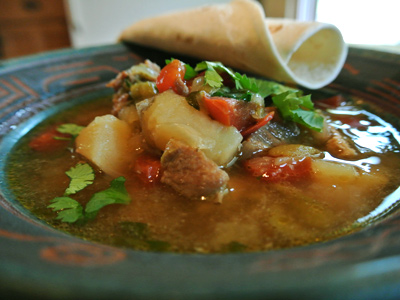 Ladle into bowls and serve with buttered flour tortillas.