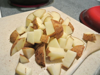 I diced 2 unpeeled medium potatoes to go into the stew next.
