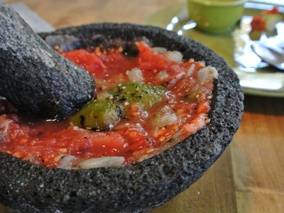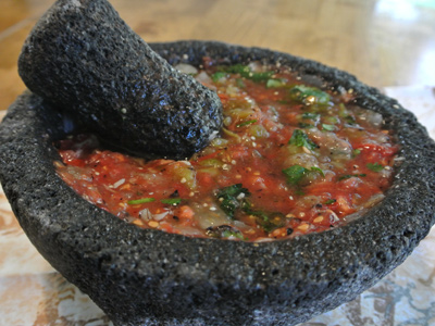 The consistency depends on how much you grind the ingredients. The onion seemed to be my biggest challenge and I think next time I would chop it into smaller pieces before adding. Other than the fresh salsa aroma, we detected an earthy smell that emitted from the molcajete.
