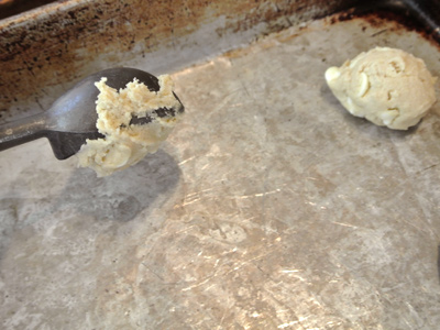 I used an ice cream scooper to drop the cookie dough onto an ungreased baking sheet.