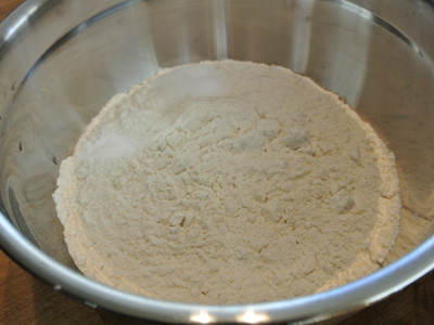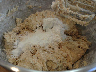 Blend in the flour mixture a little bit at a time, mixing after each addition.