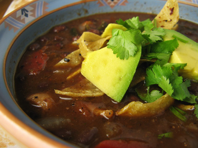 Black Bean Soup is a rare treat for me. You see, my husband doesn’t eat beans. I mean he doesn’t eat ANY beans of ANY kind, therefore I’ve gotten out of the habit of adding beans to our diet. He definitely did not grow up in NM where beans, chiles and tortillas are staple ingredients in every kitchen. It’s getting colder and I’ve been in the mood for a hearty soup. This recipe is definitely loaded with flavor with a variety of chiles, bacon, tomatoes, and seasonings. And of course I couldn’t go without my toppings. I couldn’t resist some crunchy corn tortilla strips with avocado slices and cilantro. It definitely warmed my soul and lifted my spirits on this cold dreary day.