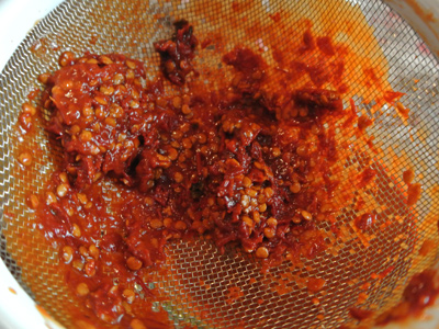Strain sauce through a strainer.  Refrigerate any unused sauce.