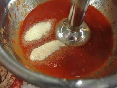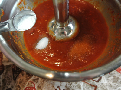 If using an emulsion blender, place the chipotles en adobo sauce into a deep mixing bowl.  Begin pulsing to break apart the chiles.