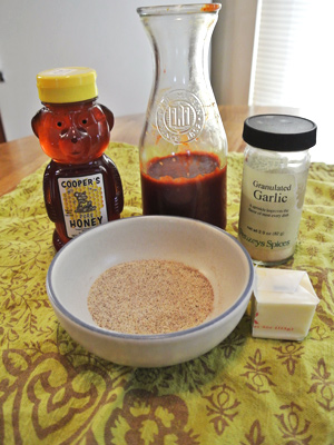 While the wings are in the oven I’m going to get started on the wing sauce. I’m going to try out the homemade Chipotle Tabasco sauce along with some butter, honey, Chipotle seasoning blend and a little extra garlic powder.