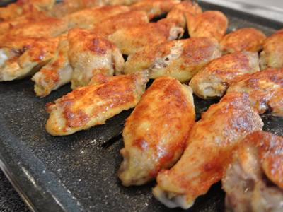 Remove wings from oven, turn the wings over and baste with Wing sauce. Return to oven for an additional 20 minutes.