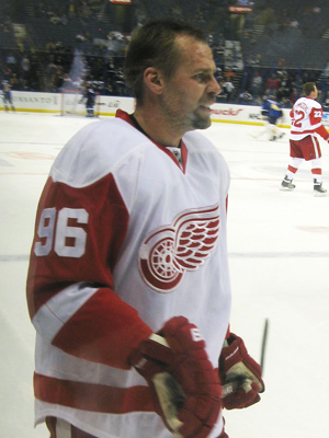 Another unforgettable wing is Tomas Holmstrom. I will “for sure” miss Homer most of all. I loved listening to him speak swenglish (part swedish, part english). He took more abuse in front of the net and gave opposing goalies fits. He was so much fun to watch on and off the ice.