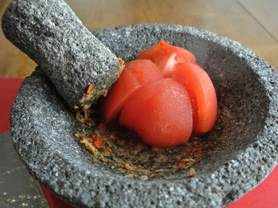 **This is the amount that will fill most molcajete’s.  It you would like to double the recipe, just pour the prepared salsa into a bowl and begin grinding the next batch.
