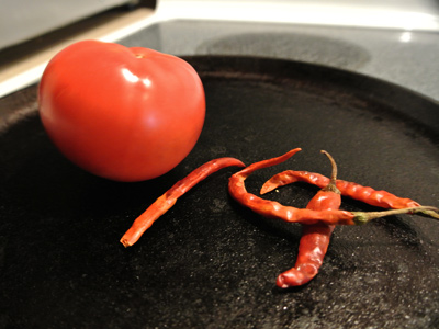 There are several ways to roast your tomatoes, over an open flame, in the oven on the broiler setting, or in a cast iron pan.  I wanted to gently toast the chiles just until they become aromatic and a little darker in color.  The tomato should be rotated so that it roasts on all sides so the skin can be easily removed.