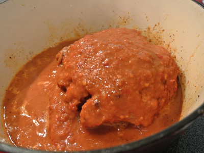 Pour the entire Chipotle marinade over the pork roast and slow cook it over low heat for 4 – 5 hours on top of the stove or in the oven at 300 degrees. Check the roast and turn every hour.