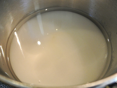 Start by making a simple syrup of sugar and water. Heat on low until sugar dissolves stirring as you go.