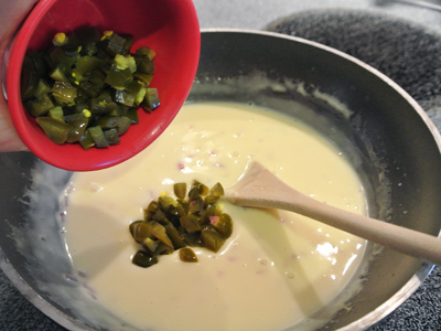 If using pickled jalapenos add them in now along with a tablespoon of the juice.