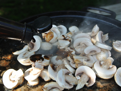 Another pat of butter and olive oil. Add the mushrooms and another teaspoon of worcestershire sauce.