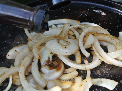 Within a couple minutes they will brown and soften. Remove them from the griddle.